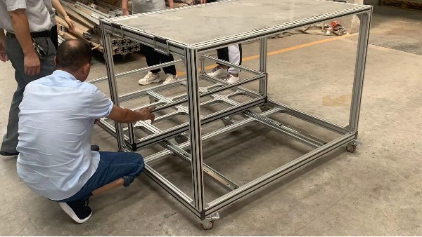 工業鋁型材平板腳輪框架由專用工業鋁型材根據客戶需求進行免費設計、切割加工,配件連接而組成,為了使用移動方便采用支架使用平板帶剎腳輪,可以根據客戶的個性化需求進行選材定制,工業鋁型材框架型材功能好,質量優。